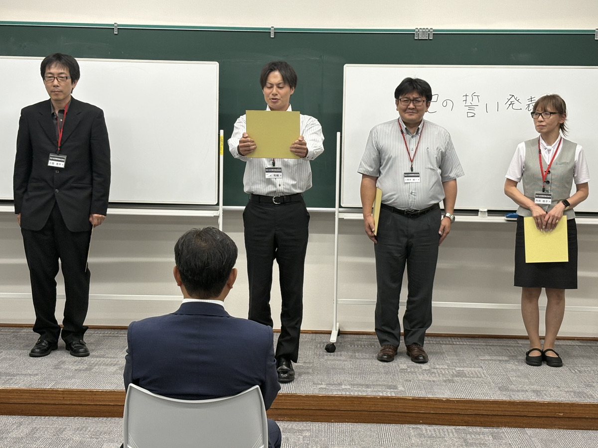本研修は宿泊型で行いましたが、昨年度の研修で立てた自己の誓いの実践状況の振り返りを始め、たくさんの学びがあり、充実した二日間となりました。最後の自己の誓い発表会では、やる気に満ち溢れた顔付で発表する姿がとても印象的でした。参加者の皆さん、お疲れ様でした。